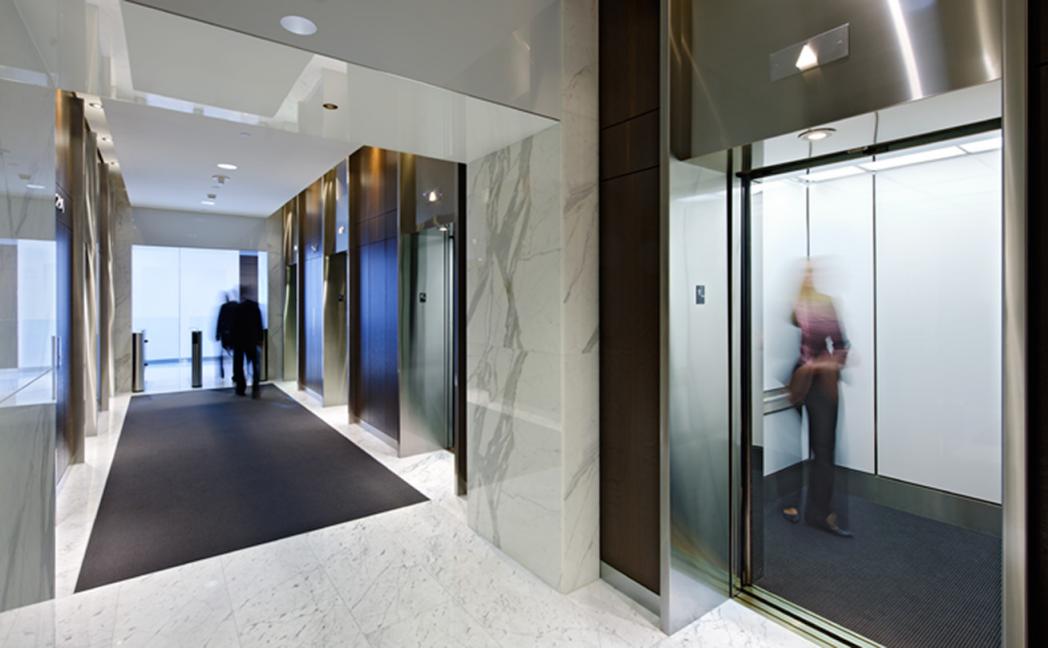 Elevator lobbies were also redesigned with a rich, dark fumed oak with white glass and stainless accent details. The elevator cabs themselves create an ethereal feeling with walls and ceiling made from illuminated glass. One Post Office Square is now the hot address on the Square and is the jewel within this urban center.