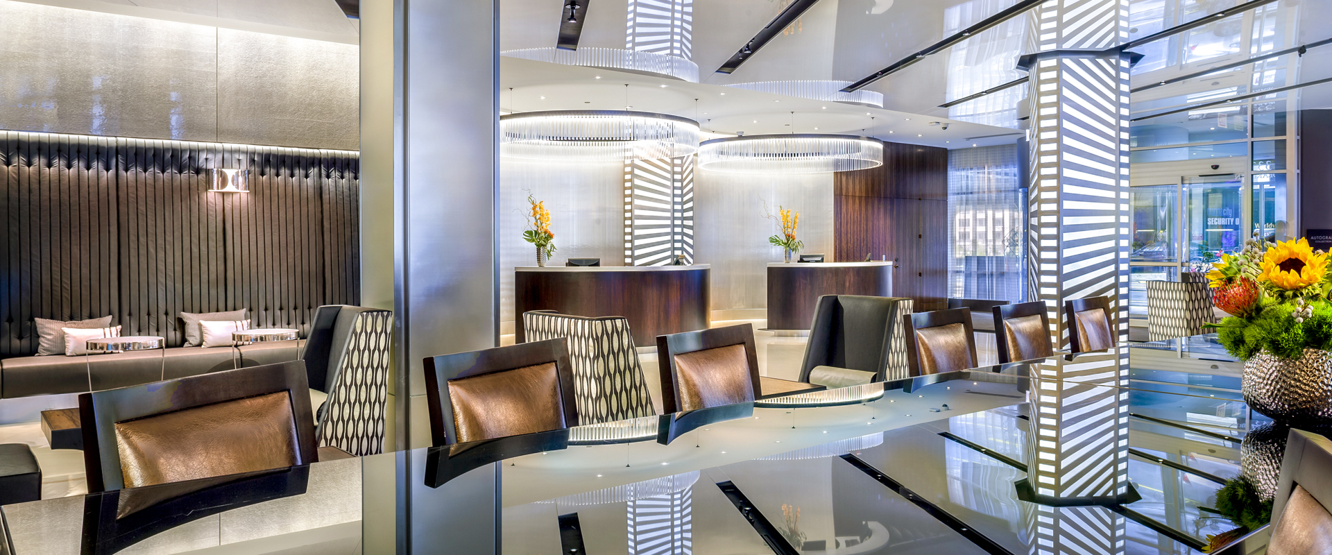 Located in the heart of downtown Chicago, the redesign of Hotel Chicago's lobby, lobby bar, restaurant space, entry, meeting rooms, and 354 guestrooms embraces the city's iconic architectural history, particularly that of the Marina City towers; a distinguishing feature on this notable city block.