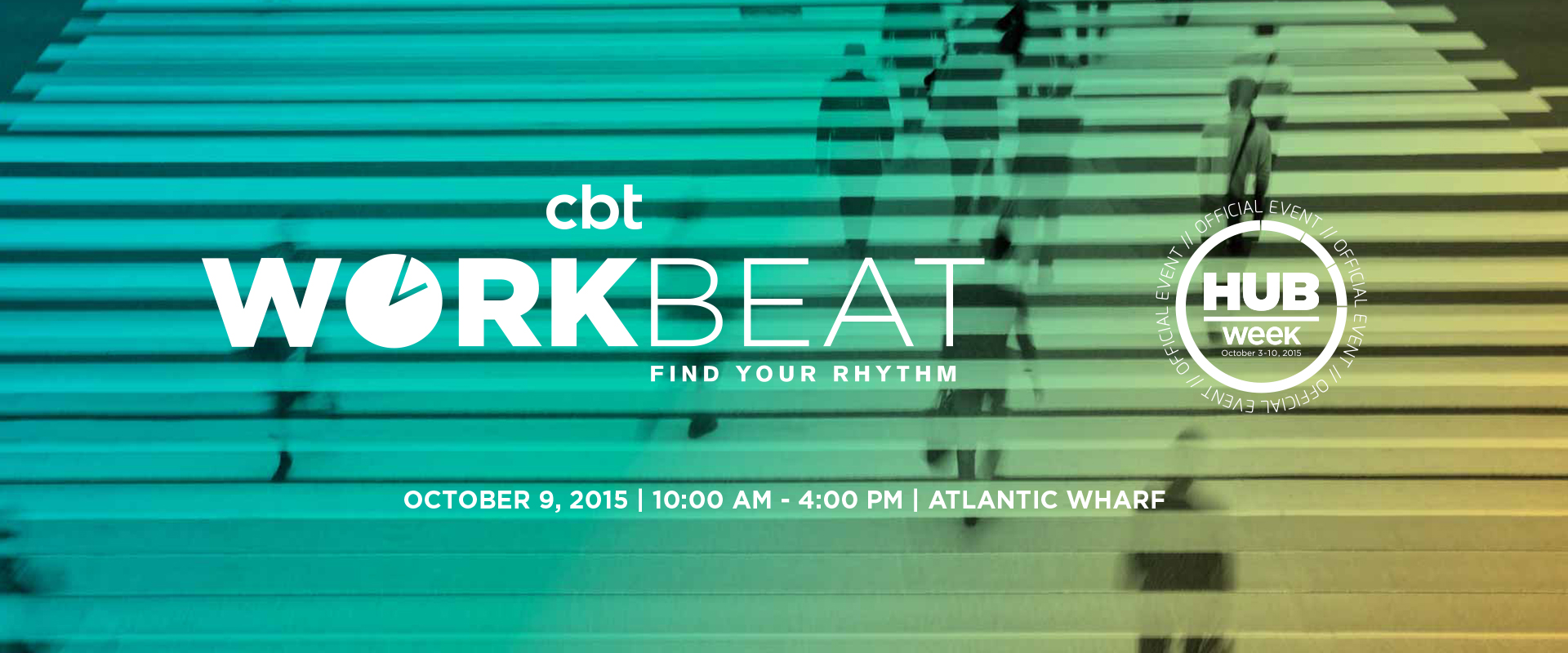 CBT is thrilled to be partnering with HUBweek, Boston’s first innovation festival, to present WorkBeat – a pop-up community will blur the lines between work and life through one-of-a-kind events and spaces to not only meet, work, and brainstorm but also relax, play, learn, and create to your own beat. From the “Focus Forest” and outdoor co-working spaces to fitness classes, pop-up cafe and music, this eclectic collection of experiences will encourage you to create a new rhythm to your workday. It will also spark a powerful conversation about what it means to work, learn and play in Boston today!